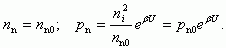 Распределение концентрации неравновесных носителей в ОПЗ p-n перехода и в квазинейтральном объеме будет отличаться от равновесного. На границе области пространственного заряда, где Fp - Fn = qVG, выражение для концентрации nn, pn будет: