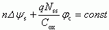 (6.66)Отсюда следует, что в предпороговой области зависимость поверхностного потенциала ψs от квазиуровня Ферми φc будет определяться следующим выражением: